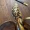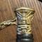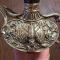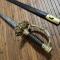 Fusée en corne noire non filigranée, monture en laiton ciselé , pommeau au faisceau de licteur, garde à une branche ornée sur ses deux faces de la symbolique poignée de main maçonnique .
