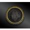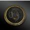 Tsuba ajouré, gravé d’une première frise en laiton rehaussé à l’or et d’une seconde frise à l’extrémité en laiton, le tout pour former une roue stylisée.