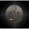 Nagaramu gata en fer à décor de moine en kimono sous une lune levante. Les motifs du kimono sont incrustés en nunome zogan et la tête est en incrustée d’argent. Au dos, le décor du kimono se poursuit, avec un balai incrusté en nunome zogan.