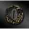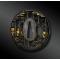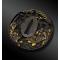 Tsuba ajouré, ciselé de sept hommes en kimono dans une forêt de bamboo, tenant un parchemin, le tout rehaussé d’or, de cuivre et d’argent.