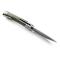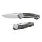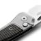 Twain est un couteau à verrouillage par bouton qui possède à la fois un cadre et une échelle SOLID® (un « Double Integral »). Les pièces nécessitent un travail de fraisage de haute précision.