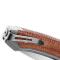 Twain est un couteau à verrouillage par bouton qui possède à la fois un cadre et une échelle SOLID® (un « Double Integral »). Les pièces nécessitent un travail de fraisage de haute précision.