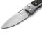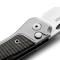 Twain est un couteau à verrouillage par bouton qui possède à la fois un cadre et une échelle SOLID® (un « Double Integral »). Les pièces nécessitent un travail de fraisage de haute précision.