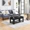 - Gain de place : Le coffre sous le plateau permet de ranger à l'abri les objets souvent utilisés (ordinateur portable, télécommandes, magazines, jeu d'échecs..). L'étagère inférieure accueille d'autres babioles.