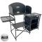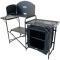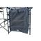 La partie latérale droite est quant à elle pourvue d'une « armoire » à deux niveaux conçue pour le stockage des aliments. Elle pourra être fermée grâce à la présence d'une moustiquaire caoutchoutée pour vous permettre de préserver les aliments stockés des insectes.