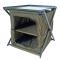 Peu encombrante une fois pliée, cette table de biwy qui pourrait presque être considérée comme une petite armoire est équipée d'un compartiment à deux étages qui peut être fermé selon vos besoins.