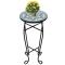 Table d'appoint Mosaïque Vert et blancCette table pour plantes a un dessus de table en mosaïque résistant aux intempéries et des pieds courbes élégants. Elle deviendra sûrement un accroche-regard dans votre jardin, sur votre balcon, terrasse, etc. Avec un diamètre de 30 cm, la table peut également être utilisée comme table d'appoint pour reposer vos boissons. Son cadre en fer contribue à la robustesse, tandis que le dessus de table en céramique est également facile à nettoyer. Elle est très durable pour une durée d'utilisation à long terme. Veuillez noter que ce produit ne convient pas pour être laissé à l'extérieur dans des conditions froides.