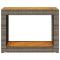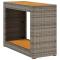 Table d'appoint de jardin dessus en bois gris 100x40x75 cmRassemblez-vous autour de cette table d'appoint de jardin polyvalente pour savourer un café ou discuter avec votre famille et vos amis dans le jardin, dans la cour ou sur la terrasse ! Matériau durable : la résine tressée, également connue sous le nom de poly rotin, est un matériau synthétique solide et nécessitant peu d'entretien qui ressemble au rotin naturel. Il est léger, facile à nettoyer et couramment utilisé pour les meubles d'extérieur en raison de sa durabilité et de ses propriétés de résistance aux intempéries. Dessus stable et facile à nettoyer : cette table de jardin a un dessus en bois d'acacia robuste, durable et facile à nettoyer avec un chiffon humide. Cadre robuste et stable : le cadre en acier enduit de poudre assure la solidité et la stabilité du meuble de jardin pour une utilisation quotidienne à l'extérieur. Bon à savoir : Pour que vos meubles d'extérieur restent beaux, nous vous recommandons de les protéger avec une housse imperméable.