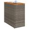 Table d'appoint de jardin dessus en bois gris 58x27,5x55 cmRassemblez-vous autour de cette table d'appoint de jardin polyvalente pour savourer un café ou discuter avec votre famille et vos amis dans le jardin, dans la cour ou sur la terrasse ! Matériau durable : la résine tressée, également connue sous le nom de poly rotin, est un matériau synthétique solide et nécessitant peu d'entretien qui ressemble au rotin naturel. Il est léger, facile à nettoyer et couramment utilisé pour les meubles d'extérieur en raison de sa durabilité et de ses propriétés de résistance aux intempéries. Dessus en bois : le dessus de la table d'extérieur est fabriqué en bois d'acacia robuste et durable, ce qui le rend facile à nettoyer avec un chiffon humide et ajoute une touche d'élégance à votre espace extérieur. Cadre robuste et stable : le cadre en acier enduit de poudre assure la solidité et la stabilité du meuble de jardin pour une utilisation quotidienne à l'extérieur. Bon à savoir : Pour que vos meubles d'extérieur restent beaux, nous vous recommandons de les protéger avec une housse imperméable. ,
