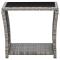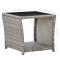 Table basse Gris 45x45x40 cm Résine tressée et verreNotre table basse en résine tressée apportera une touche d'élégance moderne à votre terrasse, balcon ou jardin avec son design sobre et élégant. Fabriquée en résine tressée résistante aux intempéries, la table d'extérieur est facile à nettoyer, résistante à l'usure et adaptée à un usage quotidien. Le cadre en acier enduit de poudre la rend très robuste et durable. La table a un dessus de table en verre, qui est facile à nettoyer et l'étagère inférieure offre un espace de stockage supplémentaire. Grâce à sa construction légère, la table à thé est facile à déplacer. La table de bistro est facile à assembler. Remarque : Nous recommandons de couvrir la table d'appoint sous la pluie, la neige et le gel.