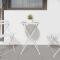 Table bistrot Blanc Ø 50 x 71 cm Acier revêtu de poudreCette table de bistrot pliable pour l'extérieur marie le style moderne à une fonctionnalité pratique. Avec sa forme ronde et son design minimaliste, elle s'intègre parfaitement dans tous les espaces extérieurs. Son look contemporain, avec des lignes épurées, la rend parfaite pour plein d'occasions, des repas tranquilles aux sessions de travail en plein air. Imaginez un jardin relaxant ou une terrasse animée, avec cette table comme pièce maîtresse, pour des moments de partage ou de calme, avec classe. Matériaux : Fabriquée entièrement en acier recouvert de poudre, cette table est faite pour durer et est super robuste. La finition en poudre lui donne en plus une belle apparence moderne et la protège des intempéries. Ce matériau solide garantit que la table résiste bien dehors, tout en gardant son intégrité et son style au fil du temps. Composants inclus : La table est livrée déjà assemblée, pas besoin de montage. Ses pieds pliables permettent de la ranger facilement ou de la déplacer. Avec des pieds et un cadre en acier, elle assure une bonne stabilité pour tous les usages, que ce soit pour un petit déj ou un apéro entre amis. Bien pensée, elle s'adapte à vos besoins d'espace rapidement. Fonctionnalités / Design : Conçue pour être pratique, cette table est pliable, parfaite pour optimiser les petits espaces. Elle permet une transition facile entre utilisation et rangement, offrant un meuble dynamique qui répond bien aux exigences actuelles. Utilisations recommandées : Idéale pour les jardins, terrasses et autres espaces extérieurs, elle enrichit n'importe quel lieu avec son mélange de style et de fonctionnalité. Que ce soit pour manger, travailler ou se détendre, son design polyvalent répond aux divers besoins des utilisateurs sans sacrifier le style ou le confort. Entretien : Pour le nettoyage, c'est du gâteau : un coup d'éponge avec un chiffon doux et ça brille ! La finition en poudre est résistante aux intempéries, donc un peu de pluie n'impactera pas son look ni ses performances.