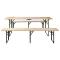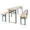Table de brasserie pliable avec 2 bancs 220 cm Bois de sapinCe mobilier de jardin en bois de haute qualité contient une table de brasserie et 2 bancs correspondants. Il créera un coin d'assise accueillant pour votre jardin ou patio. La table et les bancs peuvent être pliés pour économiser l'espace de stockage. Fabriqué en bois de sapin chinois et en métal, l'ensemble est résistant et très durable.