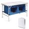 Caractéristiques techniques : Couleur : Bleu Matériaux : Aluminium plaque de densité tissu Oxford Dimensions hors tout : 120 x 60 x 54 / 70 cm Capacité de poids : 20 kg Hauteur réglable : 54 cm / 71 cm Dimensions du casier : 95 x 47 x 40 cm Taille du tableau : 45 x 45 cm