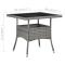 Table à dîner d'extérieur Gris Résine tressée et verreRéaménagez votre cour ou votre porche avec cette table de salle à manger accueillant de patio. Elle peut sans effort répondre aux besoins de vos invités tout en créant le cadre idéal pour les repas en plein air ! Vous pouvez profiter d'un dîner sous les étoiles ou d'un déjeuner ensoleillé sur la terrasse avec notre table à manger. Elle peut accueillir jusqu'à 4 personnes. Avec un cadre en acier enduit de poudre recouvert de résine tressée résistante aux intempéries avec une protection UV, cette table garantit des années d'utilisation en plein air. Fabriqué en verre trempé renforcé avec support résistant, le dessus de table est facile à entretenir et à nettoyer. De plus, la construction légère en rotin rend cette table facile à déplacer. Remarque importante : Nous vous recommandons de couvrir la table par temps pluvieux, neigeux, gelé ou par tout autre temps rigoureux afin de prolonger sa durée de vie. ,