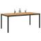 Table de jardin 180 x 90 x 75 cm en bois d'acacia solide et métalCette table à manger de patio apporte une belle touche à votre espace extérieur. Parfaite pour les repas en plein air ou les apéros, avec un joli mélange de bois naturel et de métal solide. Elle est faite pour durer et s'accorde à toutes les ambiances extérieures. Construction durable : Faisant en acier et bois naturel, cette table résiste aux conditions extérieures tout en gardant sa force. Le cadre en métal solide et revêtu en poudre offre un bon soutien tandis que la surface en bois lisse ajoute de la chaleur à votre espace. Taille généreuse : Avec ses dimensions de 180 x 90 cm, elle peut confortablement accueillir 6 personnes, parfaite pour les réunions de famille ou les barbecues d'été. Pas mal d'espace pour les assiettes, boissons et décorations. Look moderne : Son design stylé avec des lignes nettes et une ambiance minimaliste s'accorde facilement avec différents styles, du moderne au rustique, créant un espace accueillant. Facile à nettoyer : Avec une surface lisse, un simple coup avec un chiffon humide fait l'affaire. Prenez soin d'elle et utilisez une housse quand elle est inutilisée pour qu'elle demeure jolie longtemps. Utilisation polyvalente : Parfaite pour balcons, jardins, patios ou n'importe quel endroit à l'extérieur, elle est idéale pour les repas et rassemblements, des petits déjeuners décontractés aux dîners plus chic.