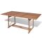 Table de jardin 180x90x75 cm Bois de teck solideCette table à manger d'extérieur en teck a un design classique et est parfaite pour manger en plein air dans le jardin ou sur le patio. Fabriquée en bois dur de teck extrêmement durable, cette pièce de meuble en teck a été chevronnée, séchée au four puis finement poncée pour lui donner un aspect très lisse. Le bois de teck est connu pour sa résistance exceptionnelle aux intempéries, ce qui le rend bien plus adapté aux meubles de jardin que tout autre type de bois. Le bois de teck est le choix idéal si vous souhaitez acheter une pièce de meubles de jardin durable. La surface est facile à nettoyer avec un chiffon humide. Le dessus de table comporte un trou pour parasol, pour que vous puissiez profiter de la brise estivale sans vous soucier du soleil brûlant. Le produit en bois a été appliqué avec une belle finition pour donner au bois une couleur chaude. La livraison inclut 1 table de salle à manger. Veuillez noter qu'un parasol n'est pas inclus dans la livraison.