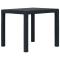 Table de jardin Anthracite 79x79x72cm Plastique Aspect de rotinNotre table de jardin en plastique sera un excellent choix pour les repas en plein air dans le jardin, sur la terrasse ou au camping. La table de salle à manger à l'aspect de rotin est en plastique solide, ce qui la rend durable et robuste, ainsi que résistante aux intempéries et est facile à nettoyer. De plus, son design à l'aspect de rotin ajoute une touche de charme naturel à votre espace de vie extérieur. La table de jardin est également légère et facile à déplacer. La table d'extérieur est facile à assembler. ,