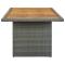 Table de jardin Gris clair Résine tressée et bois d'acaciaCette table de jardin en résine tressée ajoute une touche d'élégance moderne à votre espace de vie extérieur avec son design simple mais élégant. Grâce à la résine tressée ronde, cette table d'extérieur est facile à nettoyer et durable à utiliser. Le cadre en acier enduit de poudre et le dessus de table en bois d'acacia massif rendent également la table solide et stable. Le dessus de table solide est parfait pour placer ou afficher vos différents essentiels. De plus, cette table de salle à manger est facile à déplacer grâce à sa construction légère. Remarque importante : Nous vous recommandons de couvrir la table pendant la pluie, la neige et le gel pour une utilisation durable. ,