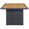 Table de jardin Gris foncé Résine tressée et bois d'acaciaCette table de jardin en résine tressée ajoute une touche d'élégance moderne à votre espace de vie extérieur avec son design simple mais élégant. Grâce à la résine tressée ronde, cette table d'extérieur est facile à nettoyer et durable à utiliser. Le cadre en acier enduit de poudre et le dessus de table en bois d'acacia massif rendent également la table solide et stable. Le dessus de table solide est parfait pour placer ou afficher vos différents essentiels. De plus, cette table de salle à manger est facile à déplacer grâce à sa construction légère. Remarque importante : Nous vous recommandons de couvrir la table pendant la pluie, la neige et le gel pour une utilisation durable. ,