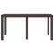 Table de jardin Marron 150x100x73 cm Poly RattanVoici une grande table rectangulaire pour l'extérieur, parfaite pour votre patio ou balcon ! Son design moderne s'adapte à tous les styles dehors. En plus, elle est légère et ses dimensions la rendent facile à déplacer. Idéale pour vos repas en plein air et pour passer de bons moments en famille ou entre amis. Construction solide : Fabriquée en plastique synthétique, cette table résiste aux intempéries et vous accompagnera longtemps. Son design robuste garantit la stabilité tout en offrant un look moderne, parfaitement adapté à votre extérieur. Protection UV : Cette table est faite pour supporter le soleil sans perdre sa couleur, vous permettant d'apprécier votre mobilier sans souci. Montage simple : Avec un montage facile, deux personnes peuvent l'installer sans tracas, rendant l'amélioration de votre espace extérieur super simple. Taille flexible : Avec 150 cm de long, elle peut accueillir jusqu'à six personnes, offrant assez d'espace pour les repas et les moments conviviaux - parfaite pour vos évènements. Finition stylée : La finition mate donne un look élégant et est pratique, car elle ne laisse pas de traces et est facile à nettoyer, idéale pour n'importe quel évènement en extérieur.