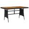 Table de jardin Noir 130x70x72 cm Résine tressée et acaciaRenouvelez votre coin repas avec cette table de jardin ! Elle ajoute un charme élégant et rustique à votre espace de vie extérieur. Vous pouvez profiter du repas sous les étoiles ou au soleil avec cette table à manger. La table de patio est dotée d'un dessus en bois d'acacia massif et d'un cadre en acier enduit de poudre, ce qui la rend robuste et durable. La table d'extérieur est recouverte de résine tressée, ce qui la rend résistante aux intempéries. Grâce à la construction légère en résine tressée, vous pouvez la déplacer facilement. Remarque : afin de prolonger la durée de vie des meubles d'extérieur, nous vous recommandons de les protéger avec une housse imperméable.