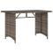 Table de jardin avec dessus en verre gris 110x68x70 cm rotinCette table de jardin avec dessus en verre, conçue avec des lignes épurées et simples, est un excellent choix pour votre jardin, terrasse et tout autre espace extérieur. Matériau durable : la résine tressée, également connue sous le nom de poly rotin, est un matériau synthétique solide et nécessitant peu d'entretien qui ressemble au rotin naturel. Il est léger, facile à nettoyer et couramment utilisé pour les meubles d'extérieur en raison de sa durabilité et de ses propriétés de résistance aux intempéries. Dessus en verre : le dessus de la table d'extérieur est fabriqué en verre trempé solide et durable, ce qui le rend facile à nettoyer avec un chiffon humide et ajoute une touche d'élégance à votre espace extérieur. Cadre robuste et stable : le cadre en acier enduit de poudre assure la solidité et la stabilité du meuble de jardin pour une utilisation quotidienne à l'extérieur. Bon à savoir : Pour que vos meubles d'extérieur restent beaux, nous vous recommandons de les protéger avec une housse imperméable. Maximum 110 kg par siège. Soyez conscient du risque de feux ouverts et d'autres sources de forte chaleur à proximité du produit.