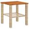 Table de jardin beige 40x40x42 cm résine tressée et bois acaciaRassemblez-vous autour de cette table de jardin pour savourer une tasse de café ou discuter avec votre famille et vos amis dans le jardin, dans la cour ou sur la terrasse ! Matériau durable : la résine tressée, également connue sous le nom de poly rotin, est un matériau synthétique solide et nécessitant peu d'entretien qui ressemble au rotin naturel. Il est léger, facile à nettoyer et couramment utilisé pour les meubles d'extérieur en raison de sa durabilité et de ses propriétés de résistance aux intempéries. Dessus stable et facile à nettoyer : cette table de jardin a un dessus en bois d'acacia robuste, durable et facile à nettoyer avec un chiffon humide. Cadre robuste et stable : le cadre en acier enduit de poudre assure la solidité et la stabilité du meuble de jardin pour une utilisation quotidienne à l'extérieur. Bon à savoir : Pour que vos meubles d'extérieur restent beaux, nous vous recommandons de les protéger avec une housse imperméable.