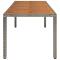 Table de jardin dessus en bois Gris 190x90x75 cm Résine tresséeCette table de jardin avec dessus en bois, conçue avec des lignes épurées et simples, est un excellent choix pour votre jardin, terrasse et tout autre espace extérieur. Matériau haut de gamme : la résine tressée est un matériau de résistance exceptionnelle et durable dans différentes conditions météorologiques. Cadre stable : le cadre en acier enduit de poudre assure la robustesse et la stabilité. Dessus de table en bois : le dessus de table en bois d'acacia massif est parfait pour placer des boissons, de la nourriture et des décorations. Il est beau en apparence et facile à nettoyer. Design résistant à l'eau : fabriqué en matériau résistant à l'eau, ce produit peut résister à l'humidité et au temps pluvieux. Il peut également être facilement nettoyé avec un chiffon humide en cas de besoin. Remarque : Chaque produit est livré avec un manuel de montage dans la boîte pour un montage facile. Afin de prolonger la durée de vie de votre mobilier d'extérieur, nous vous recommandons de le protéger avec une housse imperméable. Maximum 110 kg par siège.