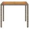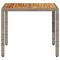 Table de jardin et dessus en bois d'acacia gris résine tresséeCette table de jardin avec dessus en bois, conçue avec des lignes épurées et simples, est un excellent choix pour votre jardin, terrasse et tout autre espace extérieur. Matériau durable : la résine tressée, également connue sous le nom de poly rotin, est un matériau synthétique solide et nécessitant peu d'entretien qui ressemble au rotin naturel. Il est léger, facile à nettoyer et couramment utilisé pour les meubles d'extérieur en raison de sa durabilité et de ses propriétés de résistance aux intempéries. Dessus stable et facile à nettoyer : cette table de jardin a un dessus en bois d'acacia robuste, durable et facile à nettoyer avec un chiffon humide. Cadre robuste et stable : le cadre en acier enduit de poudre assure la solidité et la stabilité du meuble de jardin pour une utilisation quotidienne à l'extérieur. Bon à savoir : Pour que vos meubles d'extérieur restent beaux, nous vous recommandons de les protéger avec une housse imperméable. ,