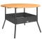 Table de jardin et dessus en bois d'acacia noir résine tresséeRassemblez-vous autour de cette table de jardin pour prendre un café ou discuter avec votre famille et vos amis dans le jardin, dans la cour ou sur la terrasse ! Matériau durable : la résine tressée, également connue sous le nom de poly rotin, est un matériau synthétique solide et nécessitant peu d'entretien qui ressemble au rotin naturel. Il est léger, facile à nettoyer et couramment utilisé pour les meubles d'extérieur en raison de sa durabilité et de ses propriétés de résistance aux intempéries. Dessus de table en bois massif : cette table de jardin est dotée d'un dessus de table en bois robuste, durable et facile à nettoyer à l'aide d'un chiffon humide. Cadre robuste et stable : le cadre en acier enduit de poudre assure la solidité et la stabilité du meuble de jardin pour une utilisation quotidienne à l'extérieur. Bon à savoir : Pour que vos meubles d'extérieur restent beaux, nous vous recommandons de les protéger avec une housse imperméable. ,