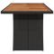 Table de jardin et dessus en bois d'acacia noir résine tresséeCette table de jardin avec dessus en bois, conçue avec des lignes épurées et simples, est un excellent choix pour votre jardin, terrasse et tout autre espace extérieur. Matériau durable : la résine tressée, également connue sous le nom de poly rotin, est un matériau synthétique solide et nécessitant peu d'entretien qui ressemble au rotin naturel. Il est léger, facile à nettoyer et couramment utilisé pour les meubles d'extérieur en raison de sa durabilité et de ses propriétés de résistance aux intempéries.Dessus stable et facile à nettoyer : cette table de jardin a un dessus en bois d'acacia robuste, durable et facile à nettoyer avec un chiffon humide.Cadre robuste et stable : le cadre en acier enduit de poudre assure la solidité et la stabilité du meuble de jardin pour une utilisation quotidienne à l'extérieur. Bon à savoir :Pour que vos meubles d'extérieur restent beaux, nous vous recommandons de les protéger avec une housse imperméable.