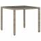 Table de jardin dessus en verre Gris 90x90x75 cm Résine tresséeCette table de jardin avec dessus en verre, conçue avec des lignes épurées et simples, est un excellent choix pour votre jardin, terrasse et tout autre espace extérieur. Matériau durable : la résine tressée, également connue sous le nom de poly rotin, est un matériau synthétique solide et nécessitant peu d'entretien qui ressemble au rotin naturel. Il est léger, facile à nettoyer et couramment utilisé pour les meubles d'extérieur en raison de sa durabilité et de ses propriétés de résistance aux intempéries. Dessus en verre : le dessus de la table d'extérieur est fabriqué en verre trempé solide et durable, ce qui le rend facile à nettoyer avec un chiffon humide et ajoute une touche d'élégance à votre espace extérieur. Cadre robuste et stable : le cadre en acier enduit de poudre assure la solidité et la stabilité du meuble de jardin pour une utilisation quotidienne à l'extérieur. Bon à savoir : Pour que vos meubles d'extérieur restent beaux, nous vous recommandons de les protéger avec une housse imperméable.