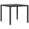 Table de jardin dessus en verre Noir 90x90x75 cm Résine tresséeCette table de jardin avec dessus en verre, conçue avec des lignes épurées et simples, est un excellent choix pour votre jardin, terrasse et tout autre espace extérieur. Matériau durable : la résine tressée, également connue sous le nom de poly rotin, est un matériau synthétique solide et nécessitant peu d'entretien qui ressemble au rotin naturel. Il est léger, facile à nettoyer et couramment utilisé pour les meubles d'extérieur en raison de sa durabilité et de ses propriétés de résistance aux intempéries. Dessus en verre : le dessus de la table d'extérieur est fabriqué en verre trempé solide et durable, ce qui le rend facile à nettoyer avec un chiffon humide et ajoute une touche d'élégance à votre espace extérieur. Cadre robuste et stable : le cadre en acier enduit de poudre assure la solidité et la stabilité du meuble de jardin pour une utilisation quotidienne à l'extérieur. Bon à savoir : Pour que vos meubles d'extérieur restent beaux, nous vous recommandons de les protéger avec une housse imperméable.