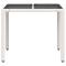 Table de jardin dessus en verre blanc 90x90x75cm résine tresséeRassemblez-vous autour de cette table de jardin pour profiter d'un repas ou discuter avec votre famille et vos amis dans le jardin, la cour arrière ou sur la terrasse ! Matériau durable : la résine tressée, également connue sous le nom de poly rotin, est un matériau synthétique solide et nécessitant peu d'entretien qui ressemble au rotin naturel. Il est léger, facile à nettoyer et couramment utilisé pour les meubles d'extérieur en raison de sa durabilité et de ses propriétés de résistance aux intempéries. Dessus en verre : le dessus de la table d'extérieur est fabriqué en verre trempé solide et durable, ce qui le rend facile à nettoyer avec un chiffon humide et ajoute une touche d'élégance à votre espace extérieur. Cadre robuste et stable : le cadre en acier enduit de poudre assure la solidité et la stabilité du meuble de jardin pour une utilisation quotidienne à l'extérieur. Bon à savoir : Pour que vos meubles d'extérieur restent beaux, nous vous recommandons de les protéger avec une housse imperméable.