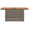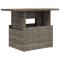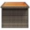 Table de jardin gris 100x55x73 cm résine tressée et bois acaciaRassemblez-vous autour de cette table de jardin polyvalente pour savourer une tasse de café ou discuter avec votre famille et vos amis dans le jardin, dans la cour ou sur la terrasse ! Matériau durable : la résine tressée, également connue sous le nom de poly rotin, est un matériau synthétique solide et nécessitant peu d'entretien qui ressemble au rotin naturel. Il est léger, facile à nettoyer et couramment utilisé pour les meubles d'extérieur en raison de sa durabilité et de ses propriétés de résistance aux intempéries. Dessus de table réglable : le dessus de table peut être soulevé pour rendre la table plus haute, ce qui transforme la table d'extérieur d'une table basse à une table de salle à manger. Elle est parfaite pour recevoir des invités ou prendre des repas à l'extérieur. Dessus stable et facile à nettoyer : cette table de jardin a un dessus en bois d'acacia robuste, durable et facile à nettoyer avec un chiffon humide. Cadre robuste et stable : le cadre en acier enduit de poudre assure la solidité et la stabilité du meuble de jardin pour une utilisation quotidienne à l'extérieur. Bon à savoir : Pour que vos meubles d'extérieur restent beaux, nous vous recommandons de les protéger avec une housse imperméable.