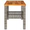 Table de jardin gris 70x38x42 cm résine tressée et bois acaciaRassemblez-vous autour de cette table de jardin pour savourer une tasse de café ou discuter avec votre famille et vos amis dans le jardin, dans la cour ou sur la terrasse ! Matériau durable : la résine tressée, également connue sous le nom de poly rotin, est un matériau synthétique solide et nécessitant peu d'entretien qui ressemble au rotin naturel. Il est léger, facile à nettoyer et couramment utilisé pour les meubles d'extérieur en raison de sa durabilité et de ses propriétés de résistance aux intempéries. Dessus stable et facile à nettoyer : cette table de jardin a un dessus en bois d'acacia robuste, durable et facile à nettoyer avec un chiffon humide. Cadre robuste et stable : le cadre en acier enduit de poudre assure la solidité et la stabilité du meuble de jardin pour une utilisation quotidienne à l'extérieur. Bon à savoir : Pour que vos meubles d'extérieur restent beaux, nous vous recommandons de les protéger avec une housse imperméable.