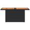 Table de jardin noir 100x55x73 cm résine tressée et bois acaciaRassemblez-vous autour de cette table de jardin polyvalente pour savourer une tasse de café ou discuter avec votre famille et vos amis dans le jardin, dans la cour ou sur la terrasse ! Matériau durable : la résine tressée, également connue sous le nom de poly rotin, est un matériau synthétique solide et nécessitant peu d'entretien qui ressemble au rotin naturel. Il est léger, facile à nettoyer et couramment utilisé pour les meubles d'extérieur en raison de sa durabilité et de ses propriétés de résistance aux intempéries. Dessus de table réglable : le dessus de table peut être soulevé pour rendre la table plus haute, ce qui transforme la table d'extérieur d'une table basse à une table de salle à manger. Elle est parfaite pour recevoir des invités ou prendre des repas à l'extérieur. Dessus stable et facile à nettoyer : cette table de jardin a un dessus en bois d'acacia robuste, durable et facile à nettoyer avec un chiffon humide. Cadre robuste et stable : le cadre en acier enduit de poudre assure la solidité et la stabilité du meuble de jardin pour une utilisation quotidienne à l'extérieur. Bon à savoir : Pour que vos meubles d'extérieur restent beaux, nous vous recommandons de les protéger avec une housse imperméable.