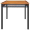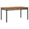 Table de jardin noir 140x80x75 cm résine tressée et bois acaciaRassemblez-vous autour de cette table de jardin pour profiter d'un repas ou discuter avec votre famille et vos amis dans le jardin, la cour arrière ou sur la terrasse ! Matériau durable : la résine tressée, également connue sous le nom de poly rotin, est un matériau synthétique solide et nécessitant peu d'entretien qui ressemble au rotin naturel. Il est léger, facile à nettoyer et couramment utilisé pour les meubles d'extérieur en raison de sa durabilité et de ses propriétés de résistance aux intempéries. Dessus stable et facile à nettoyer : cette table de jardin a un dessus en bois d'acacia robuste, durable et facile à nettoyer avec un chiffon humide. Cadre robuste et stable : le cadre en acier enduit de poudre assure la solidité et la stabilité du meuble de jardin pour une utilisation quotidienne à l'extérieur. Bon à savoir : Pour que vos meubles d'extérieur restent beaux, nous vous recommandons de les protéger avec une housse imperméable.