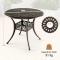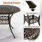 Couleur : marron antique Matériel : aluminium moulé Dimension totale : 90 x 74 cm (D x H) Diamètre du trou pour parasol : 5 cm Poids net : 9,5 kg Capacité de poids : 91 kg