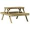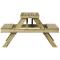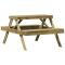 Table de pique-nique 105x134x75 cm bois de pin imprégnéCette table de pique-nique en bois est parfaite pour une utilisation à l'extérieur et est conçue pour être le point central de votre jardin, terrasse ou patio, etc. Bois imprégné : la table de jardin est en bois de pin massif. Le bois de pin massif est un matériau naturel magnifique. Le bois de pin a un grain droit et les noeuds lui confèrent un aspect rustique caractéristique. L'imprégnation est un processus de conservation réalisé à l'aide d'autoclaves. Le traitement sous pression augmente la résistance à la pourriture et aux intempéries. Dessus de table robuste : le dessus de table robuste est parfait pour placer des collations, des boissons, des vases, des bols de fruits ou d'autres objets décoratifs. Design à lattes : le design à lattes de la table d'extérieur évite l'accumulation de l'eau, gardant le siège au sec et évitant tout pourrissement inutile. Nombreuses applications : la table de pique-nique est parfaite pour le porche avant, le patio, l'arrière-cour, la pelouse, le jardin, etc. Bon à savoir : Pour que vos meubles d'extérieur restent beaux, nous vous recommandons de les protéger avec une housse imperméable. Maximum 110 kg par siège.