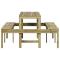 Table de pique-nique 160x134x75 cm bois de pin imprégnéCette table de pique-nique en bois est parfaite pour une utilisation à l'extérieur et est conçue pour être le point central de votre jardin, terrasse ou patio, etc. Bois imprégné : la table de jardin est en bois de pin massif. Le bois de pin massif est un matériau naturel magnifique. Le bois de pin a un grain droit et les noeuds lui confèrent un aspect rustique caractéristique. L'imprégnation est un processus de conservation réalisé à l'aide d'autoclaves. Le traitement sous pression augmente la résistance à la pourriture et aux intempéries. Dessus de table robuste : le dessus de table robuste est parfait pour placer des collations, des boissons, des vases, des bols de fruits ou d'autres objets décoratifs. Design à lattes : le design à lattes de la table d'extérieur évite l'accumulation de l'eau, gardant le siège au sec et évitant tout pourrissement inutile. Nombreuses applications : la table de pique-nique est parfaite pour le porche avant, le patio, l'arrière-cour, la pelouse, le jardin, etc. Bon à savoir : Pour que vos meubles d'extérieur restent beaux, nous vous recommandons de les protéger avec une housse imperméable. Maximum 110 kg par siège.