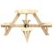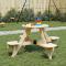 Table de pique-nique pour 4 enfants avec trou de parasol rondCette table de pique-nique est parfaite pour les patios, les jardins et les espaces d'extérieur, offrant un endroit confortable et accueillant pour que vos enfants et leurs amis puissent se détendre et s'amuser. Ensemble table et sièges 2 en 1 : la table de pique-nique avec sièges est idéale pour les fêtes et les rassemblements d'enfants. Elle offre un grand espace pour la nourriture, les boissons et les accessoires, ainsi que des sièges confortables pour que les enfants puissent profiter de leurs souvenirs d'enfance. Matériau fiable et stable : cette table de pique-nique est fabriquée en bois de sapin massif, ce qui garantit sa stabilité, sa durabilité et sa longévité. Trou pour parasol : le dessus de table est doté d'un trou pour parasol, ce qui permet d'ajouter un parasol pour l'ombre lors des journées ensoleillées. Bon à savoir : Ce produit ne convient pas pour une utilisation pendant de mauvaises conditions météorologiques telles que vent fort, fortes pluies, neige, tempêtes, etc. Cette livraison ne comprend qu'une table de pique-nique avec bancs intégrés ; le parasol n'est pas inclus. Visitez cette boutique pour trouver le parfait parasol d'extérieur assorti ! Avertissement : NE PLACEZ PAS ce produit près d'une fenêtre, car l'enfant pourrait s'en servir comme marchepied et tomber par la fenêtre. Soyez conscient du risque de feux ouverts et d'autres sources de forte chaleur à proximité de l'appareil. NE PLACEZ PAS ce produit près d'une fenêtre où les cordons des stores ou des rideaux pourraient étrangler un enfant. Avertissement ! Le produit doit être assemblé par des adultes uniquement. Veuillez tenir le produit et toutes ses pièces hors de portée des enfants jusqu'au moment de l'assemblage. Veillez à en assumer l'entière responsabilité, car le produit non assemblé contient de petites pièces et des bords tranchants potentiellement dangereux. Avertissement ! À utiliser sous la surveillance directe d'adultes. Avertissement ! La capacité de charge maximale est de 80 kg. Avertissement ! Ce produit ne convient qu'aux enfants de plus de 3 ans. ,