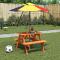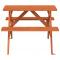 Table de pique-nique pour 4 enfants avec trou de parasol sapinCette table de pique-nique est parfaite pour les patios, les jardins et les espaces d'extérieur, offrant un endroit confortable et accueillant pour que vos enfants et leurs amis puissent se détendre et s'amuser. Ensemble table et bancs 2 en 1 : la table de pique-nique avec bancs est idéale pour les fêtes et les rassemblements d'enfants. Elle offre un grand espace pour la nourriture, les boissons et les accessoires, ainsi que des sièges confortables pour que les enfants puissent profiter de leurs souvenirs d'enfance.Matériau fiable et stable : cette table de pique-nique est fabriquée en bois de sapin massif, ce qui garantit sa stabilité, sa durabilité et sa longévité.Structure solide et stable : cette table de pique-nique présente une structure en forme de A, assurant stabilité et sécurité aux enfants qui s'adonnent à diverses activités.Trou pour parasol : le dessus de table est doté d'un trou pour parasol, ce qui permet d'ajouter un parasol pour l'ombre lors des journées ensoleillées. Bon à savoir :Ce produit ne convient pas pour une utilisation pendant de mauvaises conditions météorologiques telles que vent fort, fortes pluies, neige, tempêtes, etc.Cette livraison ne comprend qu'une table de pique-nique avec bancs intégrés ; le parasol n'est pas inclus. Visitez cette boutique pour trouver le parfait parasol d'extérieur assorti ! Avertissement. Ne convient pas aux enfants de moins de 3 ans. Petits éléments présents. Risque d'étouffement.