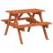 Table de pique-nique pour 4 enfants avec trou de parasol sapinCette table de pique-nique est parfaite pour les patios, les jardins et les espaces d'extérieur, offrant un endroit confortable et accueillant pour que vos enfants et leurs amis puissent se détendre et s'amuser. Ensemble table et bancs 2 en 1 : la table de pique-nique avec bancs est idéale pour les fêtes et les rassemblements d'enfants. Elle offre un grand espace pour la nourriture, les boissons et les accessoires, ainsi que des sièges confortables pour que les enfants puissent profiter de leurs souvenirs d'enfance. Matériau fiable et stable : cette table de pique-nique est fabriquée en bois de sapin massif, ce qui garantit sa stabilité, sa durabilité et sa longévité. Structure solide et stable : cette table de pique-nique présente une structure en forme de A, assurant stabilité et sécurité aux enfants qui s'adonnent à diverses activités. Trou pour parasol : le dessus de table est doté d'un trou pour parasol, ce qui permet d'ajouter un parasol pour l'ombre lors des journées ensoleillées. Bon à savoir : Ce produit ne convient pas pour une utilisation pendant de mauvaises conditions météorologiques telles que vent fort, fortes pluies, neige, tempêtes, etc. Cette livraison ne comprend qu'une table de pique-nique avec bancs intégrés ; le parasol n'est pas inclus. Visitez cette boutique pour trouver le parfait parasol d'extérieur assorti ! Avertissement. Ne convient pas aux enfants de moins de 3 ans. Petits éléments présents. Risque d'étouffement. ,