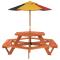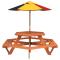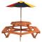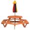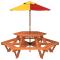 Table de pique-nique pour 6 enfants avec parasol hexagone sapinCette table de pique-nique avec parasol est parfaite pour les patios, les jardins et les espaces d'extérieur, offrant un endroit confortable et accueillant pour que vos enfants et leurs amis puissent se détendre et s'amuser. Ensemble table et bancs 2 en 1 : la table de pique-nique avec bancs est idéale pour les fêtes et les rassemblements d'enfants. Elle offre un grand espace pour la nourriture, les boissons et les accessoires, ainsi que des sièges confortables pour que les enfants puissent profiter de leurs souvenirs d'enfance.Matériau fiable et stable : cette table de pique-nique est fabriquée en bois de sapin massif, ce qui garantit sa stabilité, sa durabilité et sa longévité.Protection contre le soleil et la pluie : fabriqué en polyester durable, le parasol d'extérieur offre une protection contre le soleil et la pluie, créant ainsi un endroit idéal pour que les enfants puissent profiter de l'extérieur. Bon à savoir :Ce produit ne convient pas pour une utilisation pendant de mauvaises conditions météorologiques telles que vent fort, fortes pluies, neige, tempêtes, etc. Avertissement : NE PLACEZ PAS ce produit près d'une fenêtre, car l'enfant pourrait s'en servir comme marchepied et tomber par la fenêtre. Soyez conscient du risque de feux ouverts et d'autres sources de forte chaleur à proximité de l'appareil. NE PLACEZ PAS ce produit près d'une fenêtre où les cordons des stores ou des rideaux pourraient étrangler un enfant. Avertissement ! Le produit doit être assemblé par des adultes uniquement. Veuillez tenir le produit et toutes ses pièces hors de portée des enfants jusqu'au moment de l'assemblage. Veillez à en assumer l'entière responsabilité, car le produit non assemblé contient de petites pièces et des bords tranchants potentiellement dangereux. Avertissement ! À utiliser sous la surveillance directe d'adultes. Avertissement ! La capacité de charge maximale est de 80 kg. Avertissement ! Ce produit ne convient qu'aux enfants de plus de 3 ans.