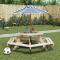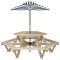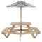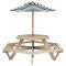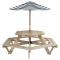 Table de pique-nique pour 6 enfants avec parasol hexagone sapinCette table de pique-nique avec parasol est parfaite pour les patios, les jardins et les espaces d'extérieur, offrant un endroit confortable et accueillant pour que vos enfants et leurs amis puissent se détendre et s'amuser. Ensemble table et bancs 2 en 1 : la table de pique-nique avec bancs est idéale pour les fêtes et les rassemblements d'enfants. Elle offre un grand espace pour la nourriture, les boissons et les accessoires, ainsi que des sièges confortables pour que les enfants puissent profiter de leurs souvenirs d'enfance. Matériau fiable et stable : cette table de pique-nique est fabriquée en bois de sapin massif, ce qui garantit sa stabilité, sa durabilité et sa longévité. Protection contre le soleil et la pluie : fabriqué en polyester durable, le parasol d'extérieur offre une protection contre le soleil et la pluie, créant ainsi un endroit idéal pour que les enfants puissent profiter de l'extérieur. Bon à savoir : Ce produit ne convient pas pour une utilisation pendant de mauvaises conditions météorologiques telles que vent fort, fortes pluies, neige, tempêtes, etc. Avertissement : NE PLACEZ PAS ce produit près d'une fenêtre, car l'enfant pourrait s'en servir comme marchepied et tomber par la fenêtre. Soyez conscient du risque de feux ouverts et d'autres sources de forte chaleur à proximité de l'appareil. NE PLACEZ PAS ce produit près d'une fenêtre où les cordons des stores ou des rideaux pourraient étrangler un enfant. Avertissement ! Le produit doit être assemblé par des adultes uniquement. Veuillez tenir le produit et toutes ses pièces hors de portée des enfants jusqu'au moment de l'assemblage. Veillez à en assumer l'entière responsabilité, car le produit non assemblé contient de petites pièces et des bords tranchants potentiellement dangereux. Avertissement ! À utiliser sous la surveillance directe d'adultes. Avertissement ! La capacité de charge maximale est de 80 kg. Avertissement ! Ce produit ne convient qu'aux enfants de plus de 3 ans.