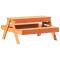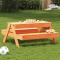 Table de pique-nique avec bac à sable pour enfants marron cireCette table de pique-nique permet aux enfants de manger confortablement à l'extérieur, de jouer à des jeux de société et de se divertir avec leurs amis. Durable et robuste : la table de pique-nique de jardin est fabriquée en bois de pin massif et possède une structure robuste et stable qui peut accompagner votre enfant pendant longtemps.Ventilé : les sièges spacieux avec un design à lattes offrent une assise confortable à votre enfant, augmentent la circulation de l'air et empêchent l'accumulation d'eau.Applications multiples : cette table de pique-nique pour enfants est parfaite pour les pique-niques, les jeux, le dessin et d'autres activités amusantes. De plus, vous pouvez retirer le panneau central en bois pour révéler un bac à sable.Scénarios polyvalents : cette table de jardin est le meuble idéal pour les enfants dans les jardins. Elle convient aussi bien à une utilisation résidentielle qu'à une utilisation quotidienne dans les écoles ou les parcs. Bon à savoir :Pour que vos meubles d'extérieur restent beaux, nous vous recommandons de les protéger avec une housse imperméable. Maximum 110 kg par siège.