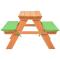 Table de pique-nique pour enfants avec bancs 89x79x50 cm SapinAssis autour de cette table de pique-nique avec bancs intégrés, vos enfants passeront un bon moment entre amis dans le jardin. La table de pique-nique est fabriquée en bois de sapin massif résistant aux intempéries, ce qui lui confère une structure stable et robuste. Les coussins fournis sont en polyester résistant à l'eau et épaississement rembourrés pour un confort d'assise optimal. Cette table de pique-nique pour enfants est facile à monter. Veuillez noter que le bois est un produit naturel et peut montrer des imperfections.