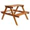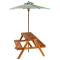 Table à pique-nique et parasol enfants 79x90x60cm Acacia solideVotre enfant passera un après-midi amusant autour de cet ensemble de table de pique-nique en bois. Il est livré comme un ensemble complet avec des bancs intégrés, une table intégrée et un parasol amovible. Matériau durable : le bois d'acacia massif est un matériau naturel magnifique. Le bois d'acacia un bois dur tropical, qui est dense, robuste et durable. Structure en forme de A : structure robuste et stable : la table est dotée d'une structure en forme de A, ce qui assure sa stabilité et sa sécurité. Parasol amovible : grâce au grand parasol inclus qui crée de l'ombre lors des journées chaudes, les enfants seront protégés des rayons directs du soleil. Le parasol est amovible. Nombreuses applications : c'est un endroit idéal pour que les enfants commencent leurs nouveaux projets d'artisanat. Les amis discutant et les jouets avec lesquels jouer seront également les bienvenus. Bon à savoir : Pour que vos meubles d'extérieur restent beaux, nous vous recommandons de les protéger avec une housse imperméable.