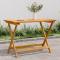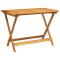 Table pliable de jardin 90x52,5x65 cm bois d'acacia solideProfitez de votre temps libre avec votre famille et vos amis autour de cette table de jardin en bois ! Bois d'acacia massif : le bois d'acacia massif est un matériau naturel magnifique. Le bois d'acacia un bois dur tropical, qui est dense, robuste et durable. Conception pliable : la table d'extérieur peut être pliée pour faciliter le déplacement et le transport. Vous pouvez la ranger dans un espace réduit lorsqu'elle n'est pas utilisée. Dessus stable : le dessus stable de la table à manger est idéal pour placer votre boisson ou toute autre nécessité dont vous avez besoin à portée de main. Surface facile à nettoyer : la surface à finition à l'huile rend cette table pliable facile à nettoyer avec un chiffon humide. Nombreuses applications : la table a un design intemporel et s'adapte à presque tous les décors. Vous pouvez la placer dans votre maison ou dans n'importe quel patio commercial, jardin, balcon, etc. Bon à savoir : Pour que vos meubles d'extérieur restent beaux, nous vous recommandons de les protéger avec une housse imperméable.
